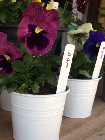 To put some colour on your table, I have some cute little aluminum buckets filled with Pansies - $4.00 each